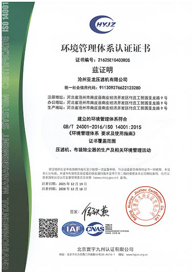 環(huán)境管理體系認證證書-