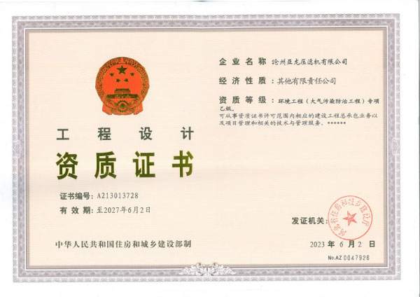 環(huán)境工程設(shè)計(jì)資質(zhì)證書-